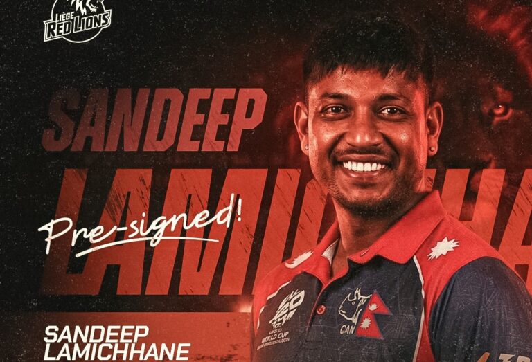 काठमाडौं: नेपाली राष्ट्रिय क्रिकेट टोलीका प्रभावशाली लेगस्पीनर सन्दीप लामिछाने बेल्जियममा आयोजना हुने ‘इयू टी–२० लिग’का
