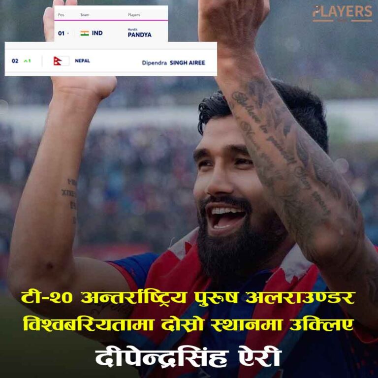 सिमराः टी–२० अन्तर्राष्ट्रिय क्रिकेट पुरुष अलराउण्डरको विश्व बरियतामा नेपालका दीपेन्द्र सिंह ऐरी दोस्रो स्थानमा उक्लिएका