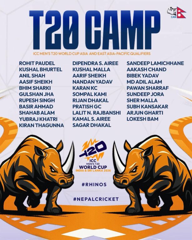काठमाडौं: आगामी अक्टोबरमा ओमानमा हुने टी-२० विश्वकप एसिया तथा पूर्वी एसिया प्यासेफिक छनोटका लागि नेपाल